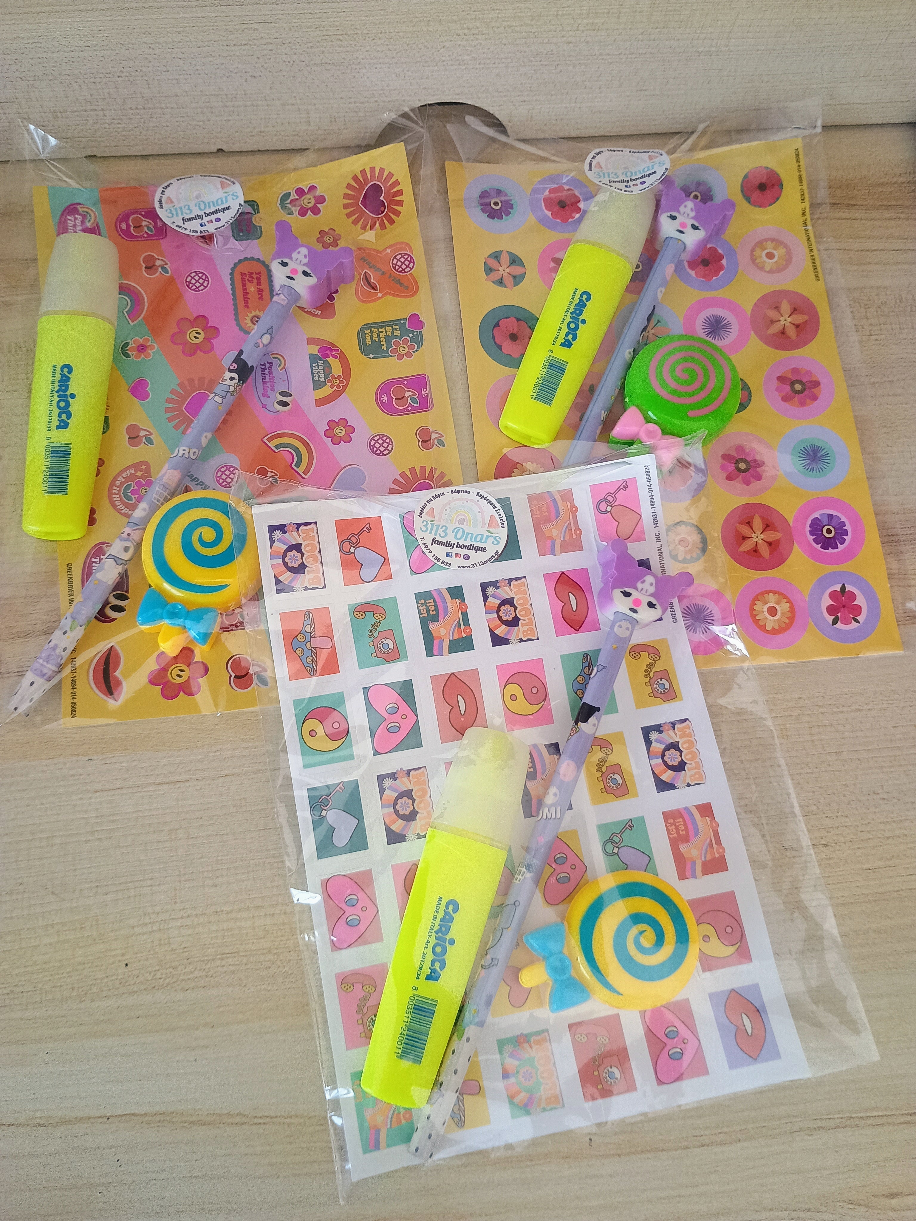 αυτοκόλλητα🩵Μαρκαδορακι carioca 🩵μολύβι με γόμα Kuromi🩵με συσκ  δώρου 🩵